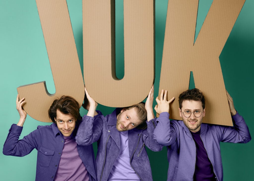 Jeroens Clan heeft het zwaar. Bram Kroon, Jip de Poorter en Matthias Tuns dragen een enorme last: een JUK.
