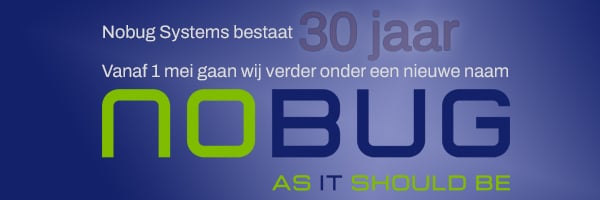 De ontwikkeling die Nobug Systems heeft doorgemaakt, maakt dat de naam niet meer voldoende passend is. Daarom gaat Nobug Systems vanaf 1 mei 2026 verder onder de naam Nobug.