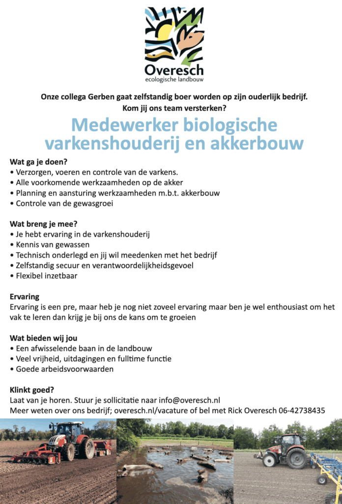 Meer weten over ons bedrijf; overesch.nl/vacature of bel met Rick Overesch 06-42738435