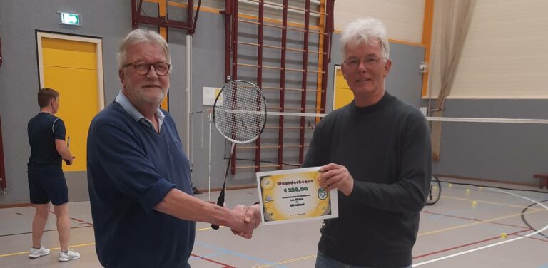 Blij verrast is de jonge badmintonvereniging AB Salland met een cheque van € 250,- uit handen van Wim Oud Ammerveld…