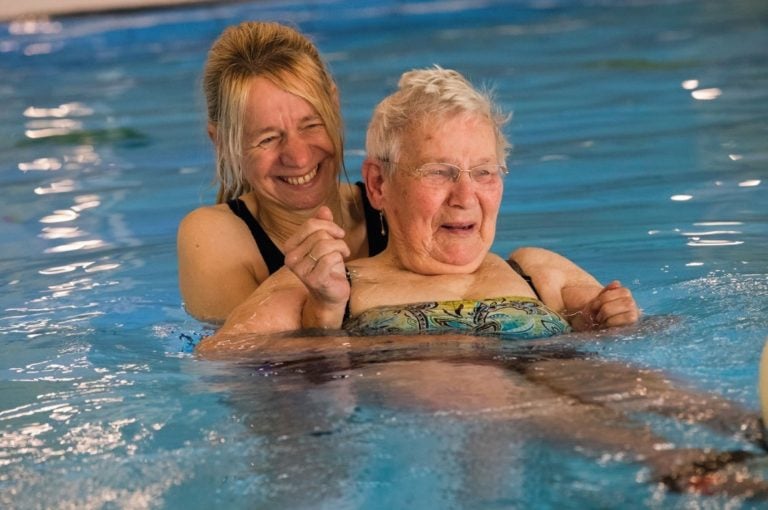 Foto © Gerard Vrakking Voor mensen met dementie of geheugenproblemen is er sinds kort een speciale zwemgroep in Zwembad Tijenraan.…