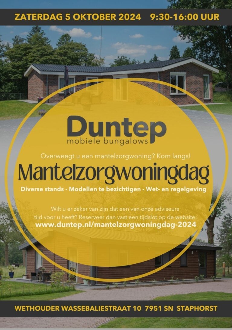 Overweegt u een mantelzorgwoning? Kom dan langs op onze mantelzorgwoningdag op zaterdag 5 oktober 2024. Georganiseerd door Duntep uit Staphorst.…