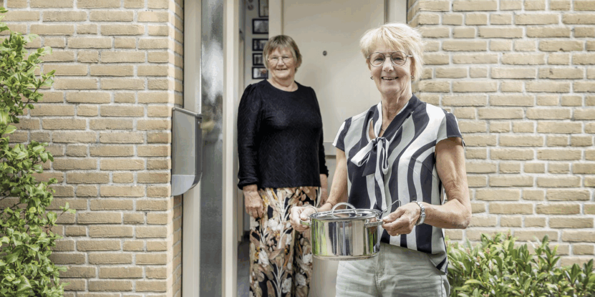 Buurvrouwen Annie (66) en Thea (67) praten al met elkaar over later. En wat zij kunnen doen om comfortabel te blijven wonen. Annie: “Wij hebben lichtsensoren geplaatst in de hal en tussen de slaapkamer en het toilet. Dat scheelt in het donker zoeken naar lichtknopjes.”