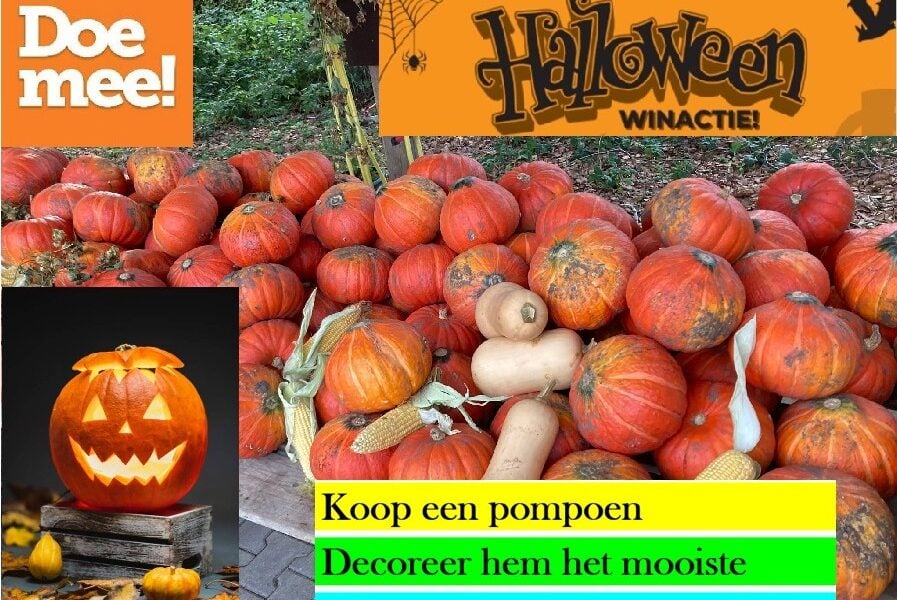 Als u bij ons pompoen koopt van onze speciale pompoenen aanbiedingstafel, creatief aan de slag gaat met versieren, snijden, decoreren, noem het maar op, kunt u een heel mooi boodschappenpakket winnen!